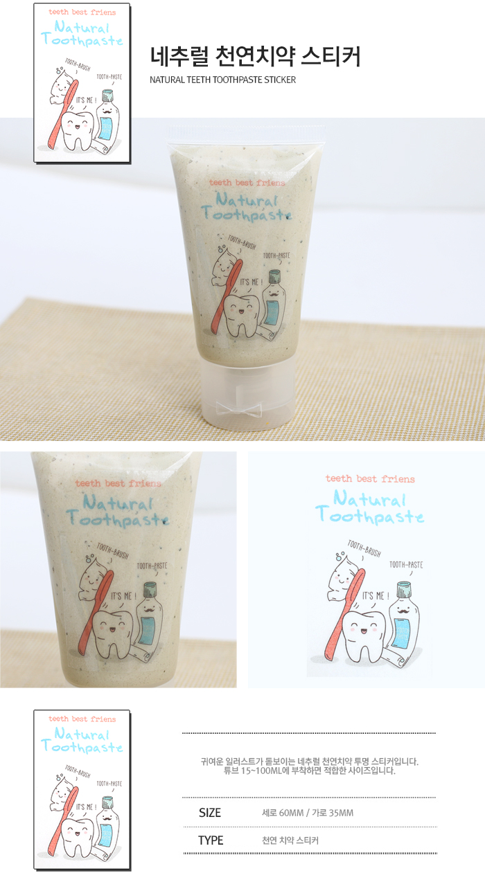 귀여운 일러스트가 돋보이는 네추럴 천연치약 스티커입니다.